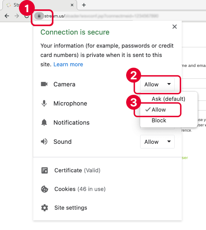 Allow Streams to access your camera and microphone